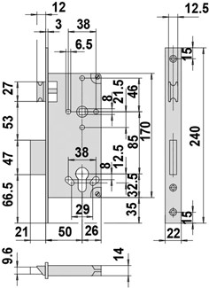 Het CISA dag- en nachtslot is een veelzijdig slot met een doornmaat van 50mm en PC-maat van 85mm. Met een rechthoekige voorplaat van 240x22mm is dit slot geschikt voor zowel draairichting links als rechts, wat het een flexibele oplossing maakt voor diverse deurtoepassingen in houten kozijnen.