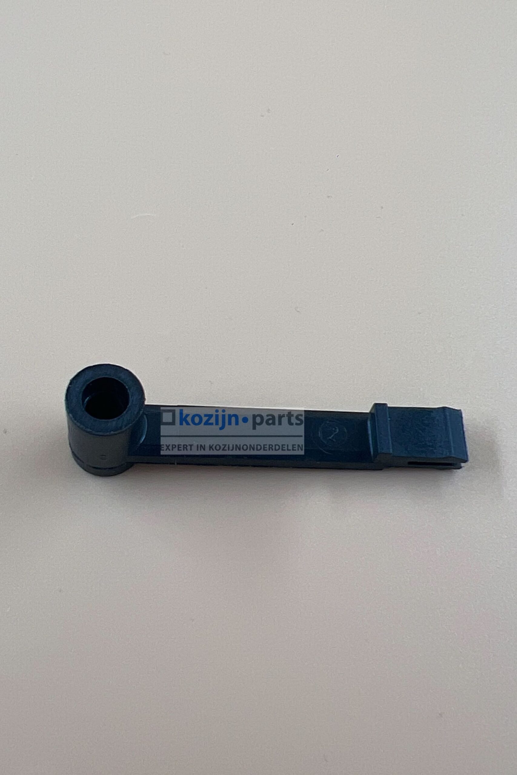 Deze bedieningshendel wordt gebruikt voor het openen en sluiten van RENSON ventilatieroosters via de bedieningsstang. Het betreft het oude model dat in eerdere RENSON systemen werd toegepast. Bij renovatie of vervanging van defecte hendels is dit het juiste onderdeel om de bediening van bestaande ventilatieopeningen te herstellen. De zwarte kleur past bij donkere kozijnsystemen en interieurafwerkingen.