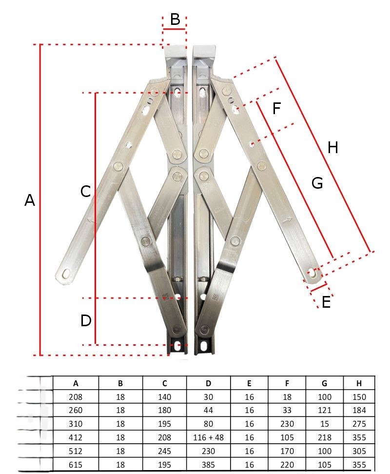 Defender schaarscharnieren bestaat uit 2 scharnieren met een lengte van 209mm, scharnierdikte 13mm en voorplaatbreedte 18mm. De maximale draai is 50 graden.